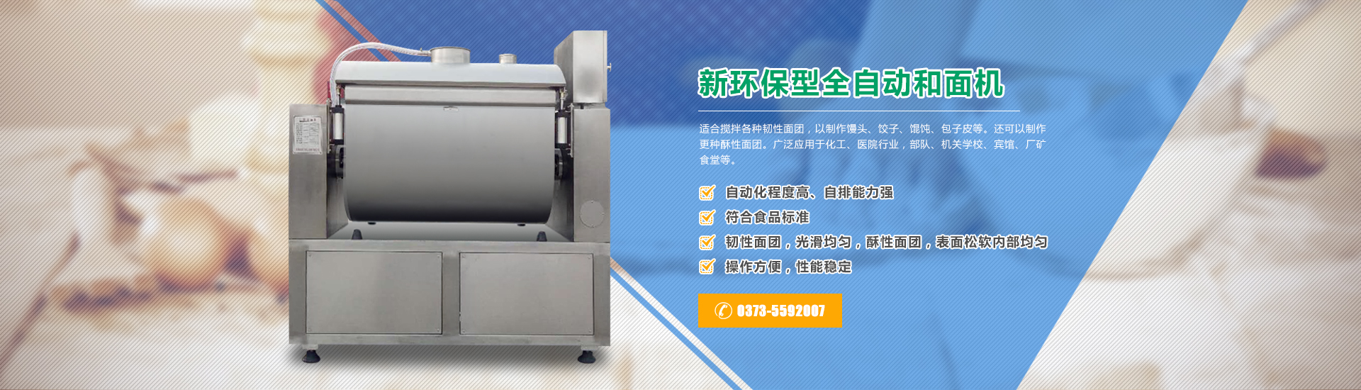 公司成立多年以來,一直是研制生產(chǎn)食品機(jī)械的企業(yè)。公司生產(chǎn)系列和面機(jī)、系列真空和面機(jī)、速凍水餃制皮機(jī)、復(fù)合壓延機(jī)、高速疊層機(jī)、卷皮機(jī)、自動(dòng)連續(xù)壓面機(jī)、壓面機(jī)、絞龍式饅頭機(jī)、刀切饅頭機(jī)、電·氣自動(dòng)蒸箱、系列饃片生產(chǎn)線、系列餅干生產(chǎn)線、米雪餅生產(chǎn)線。 公司生產(chǎn)的吉牌系列和面機(jī)、饅......