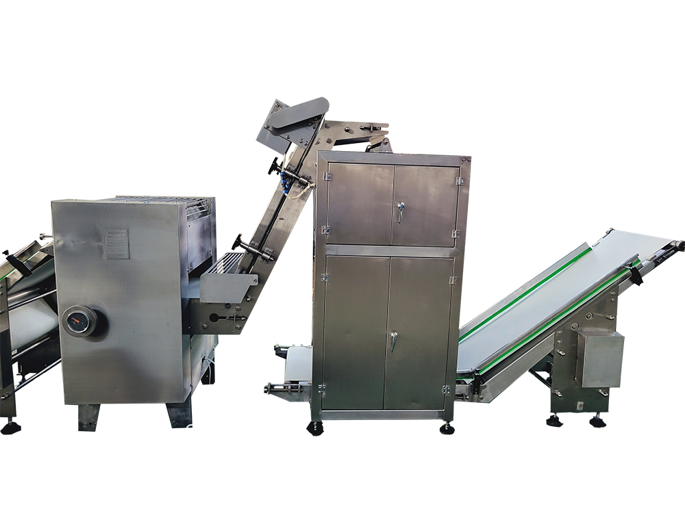2、疊層機使面帶Z字型折疊,進一步豐富面帶網狀結構,提高面筋度,設備可根據客戶場地需求選擇不同的擺放形式。