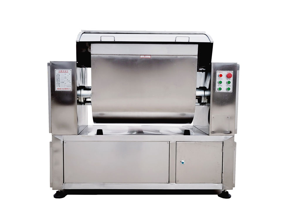 →新型臥式不銹鋼(攪拌)和面機  →型號12.5/25/50/75/100/150/200型  →功能  適合攪拌各種韌性面團。以制作饅頭、餃子、餛飩、包子皮等。更換攪拌器,還可和制作酥性面團,以制作各類糕點、湯圓、餅干以及各種餡料?! ⊥瑫r還適用于化工醫藥等行業中的同類作業。是部隊、機關、學校、酒店、廠礦、食堂可選產品。  →特色  1、和面機采用花籃式軸套設計,有效防止面團受到污染,進一  步提高食品安全?! ?、面斗可90度下翻,輕松將攪拌好的面團自動排出,節省勞動力?! ?、設備配備安全防護裝置,開蓋自動停機,確保操作人員安全?! ?、整機結構美觀大方,操作方便,噪音小,性能穩定可靠?!  饕夹g參數產品型號額定容量(kg)攪拌轉速(rpm)主電機(kw)副電機(kw)外形尺寸(長×寬×高)HWH12.5型12.5261.5640×440×725HWH25型25302.2816×437×1050HWH 50型50263.750.551326×632×1350HWH 75型75263.750.551427×632×1310HWH100型100263.750.551527×632×1310HWH150型150257.51.51664×822×1620HWH200型20021112.21864×822×1620板式刮底攪槳葉花環攪拌器