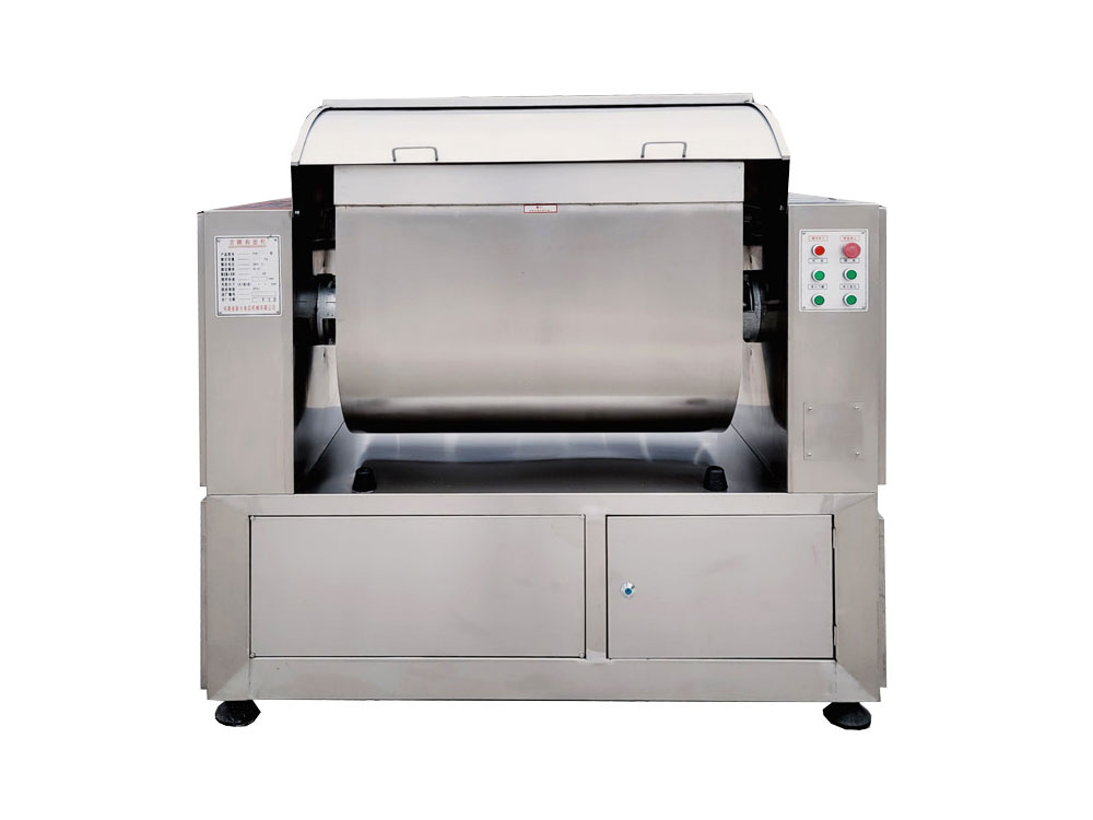 →新型臥式不銹鋼(攪拌)和面機  →型號12.5/25/50/75/100/150/200型  →功能  適合攪拌各種韌性面團。以制作饅頭、餃子、餛飩、包子皮等。更換攪拌器,還可和制作酥性面團,以制作各類糕點、湯圓、餅干以及各種餡料?! ⊥瑫r還適用于化工醫藥等行業中的同類作業。是部隊、機關、學校、酒店、廠礦、食堂可選產品?!  厣 ?、和面機采用花籃式軸套設計,有效防止面團受到污染,進一  步提高食品安全?! ?、面斗可90度下翻,輕松將攪拌好的面團自動排出,節省勞動力?! ?、設備配備安全防護裝置,開蓋自動停機,確保操作人員安全?! ?、整機結構美觀大方,操作方便,噪音小,性能穩定可靠。  →主要技術參數產品型號額定容量(kg)攪拌轉速(rpm)主電機(kw)副電機(kw)外形尺寸(長×寬×高)HWH12.5型12.5261.5640×440×725HWH25型25302.2816×437×1050HWH 50型50263.750.551326×632×1350HWH 75型75263.750.551427×632×1310HWH100型100263.750.551527×632×1310HWH150型150257.51.51664×822×1620HWH200型20021112.21864×822×1620板式刮底攪槳葉花環攪拌器